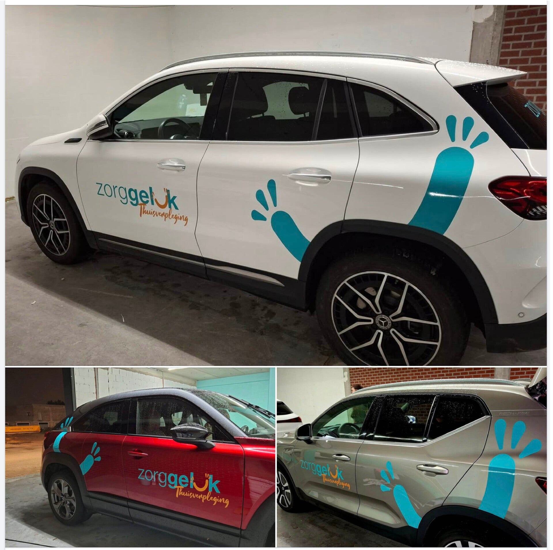 De auto's werden door ons bestickerd, de flyers ontworpen en gedrukt zodat iedereen op de hoogte is van deze thuisverplegingskoepel.